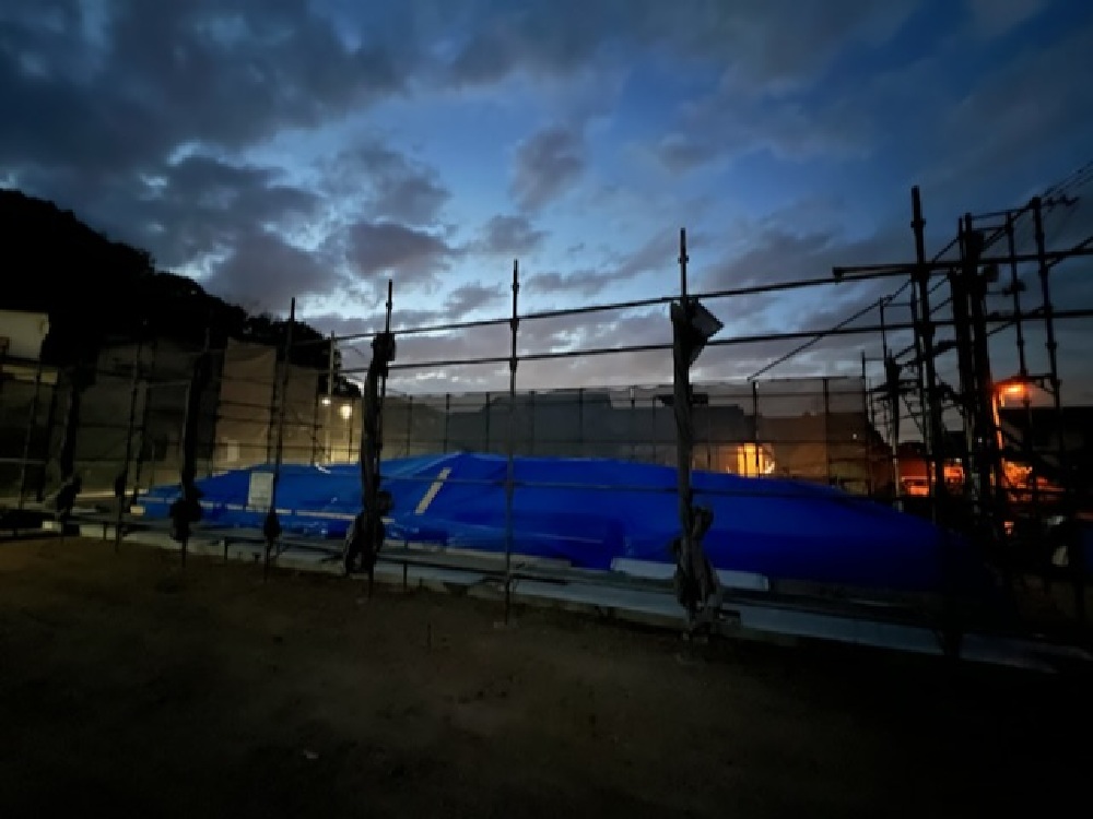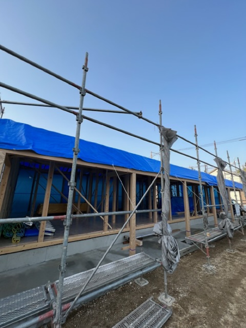 最近雨続きで、できない日もありましたが、本日は晴れて屋根工事が進みました。