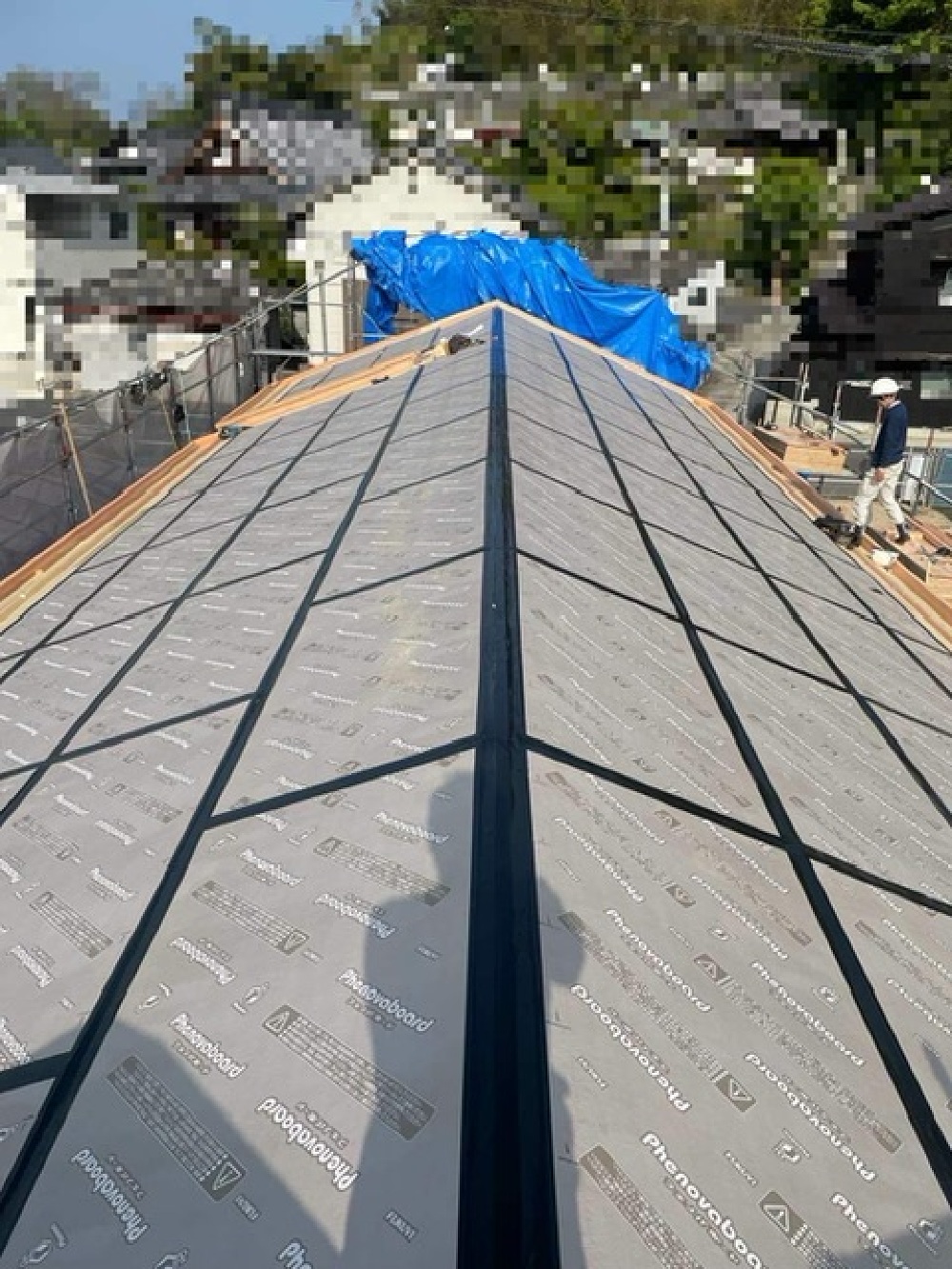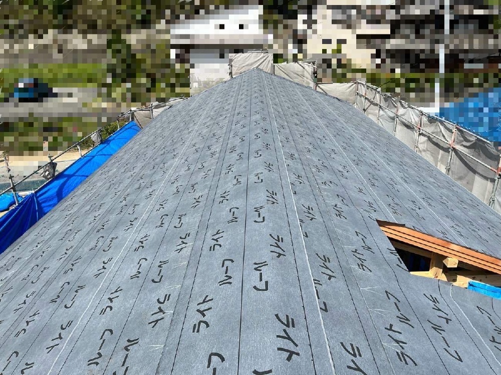 屋根材の上に、張り付ける防水機能を持ったシートを瓦屋さんに施工していただきました。