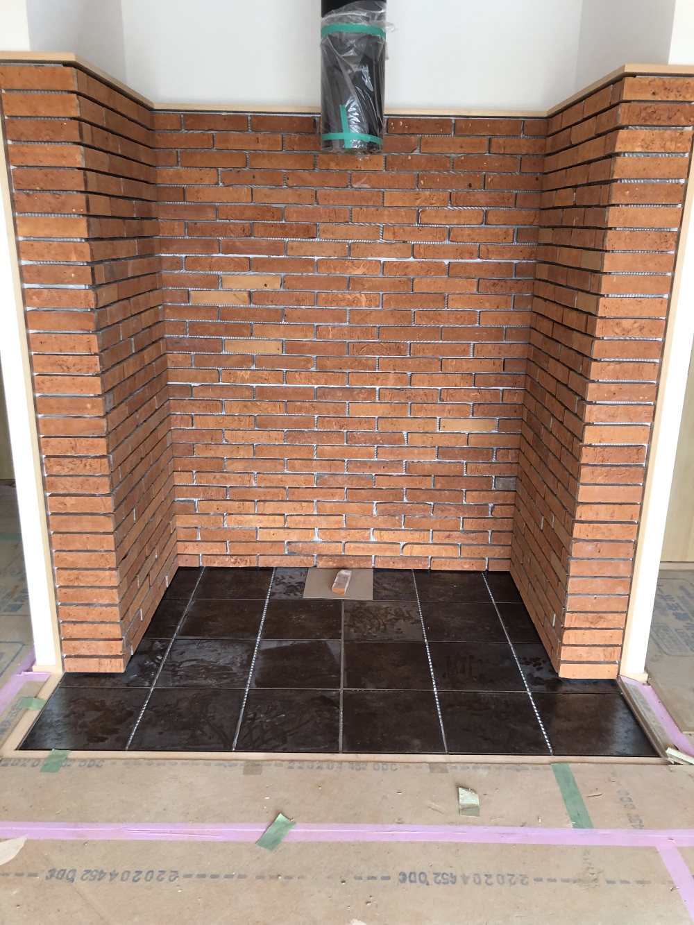 目地の施工はまだ終わってないですが床のタイルと雰囲気が合っています。