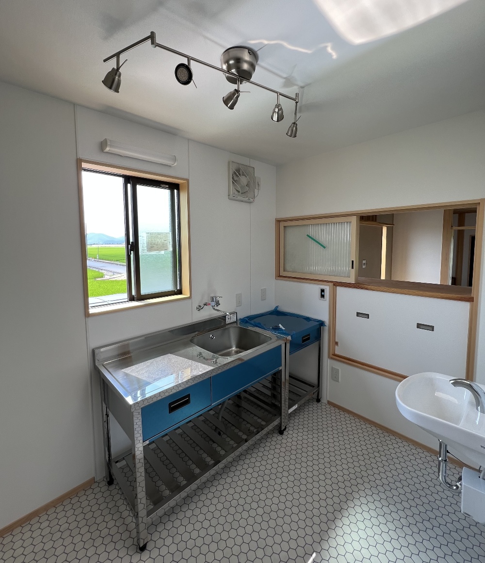 リビングの先には田園風景に伸びる土間があります。