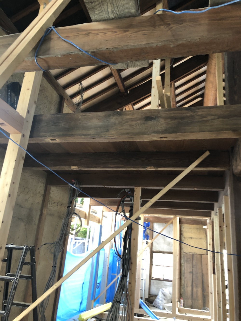 当初2階は真っ暗で登り梁も劣化が激しい部分もあったのでやっとここまで来ました。