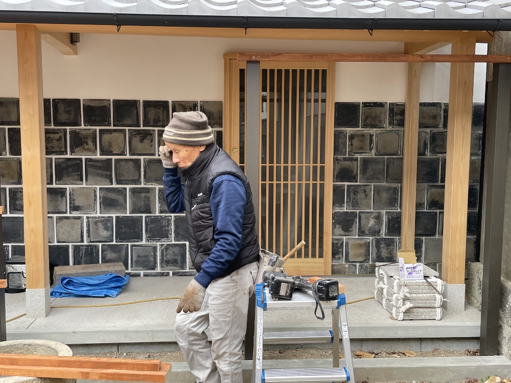 なんばのレジェンド田原大工がアプローチの板貼りをしてくれています。完成が楽しみです!