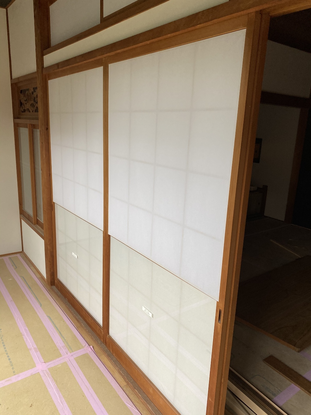 元々使用されていた建具も、貼り替えして使用します。建具が入ると、雰囲気が一気に変わりますね。