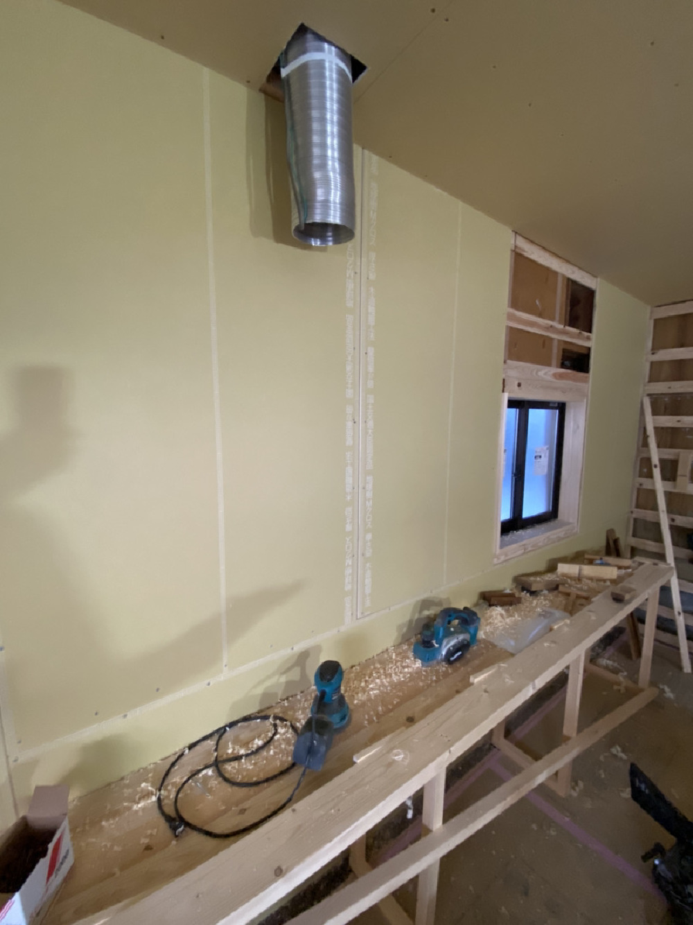 大工さん、ボード施工に入ってます。