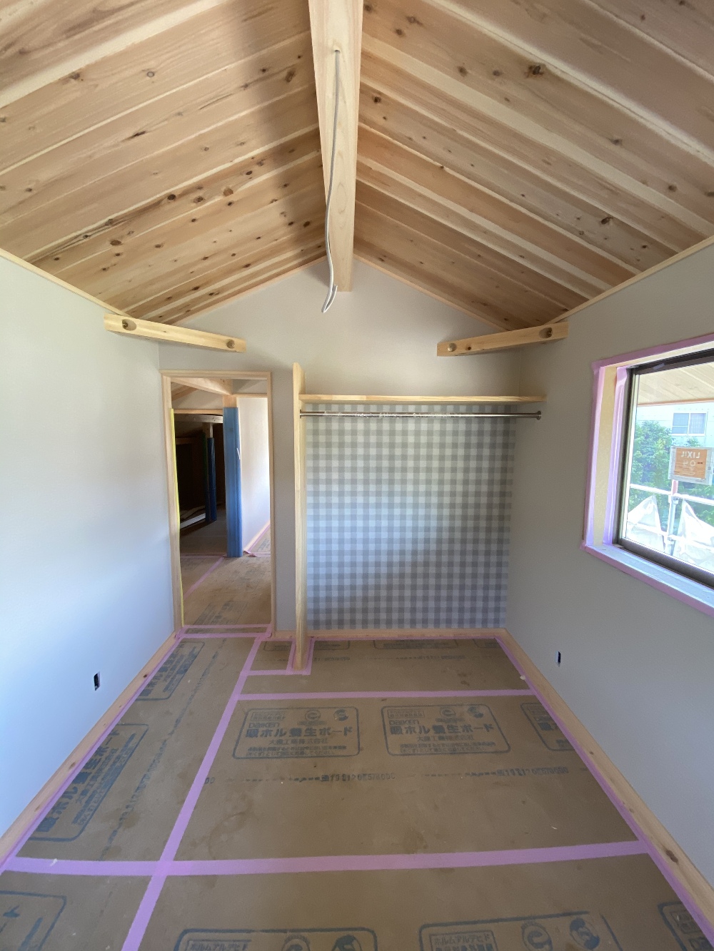 ボード張りの作業も大詰めで、大工さんの作業終盤です。
