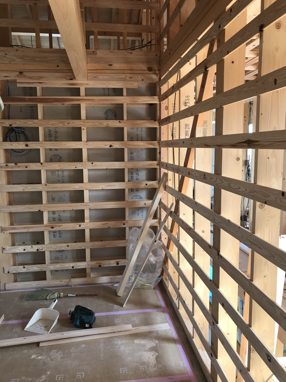 【室内】1階のボード仕上げ