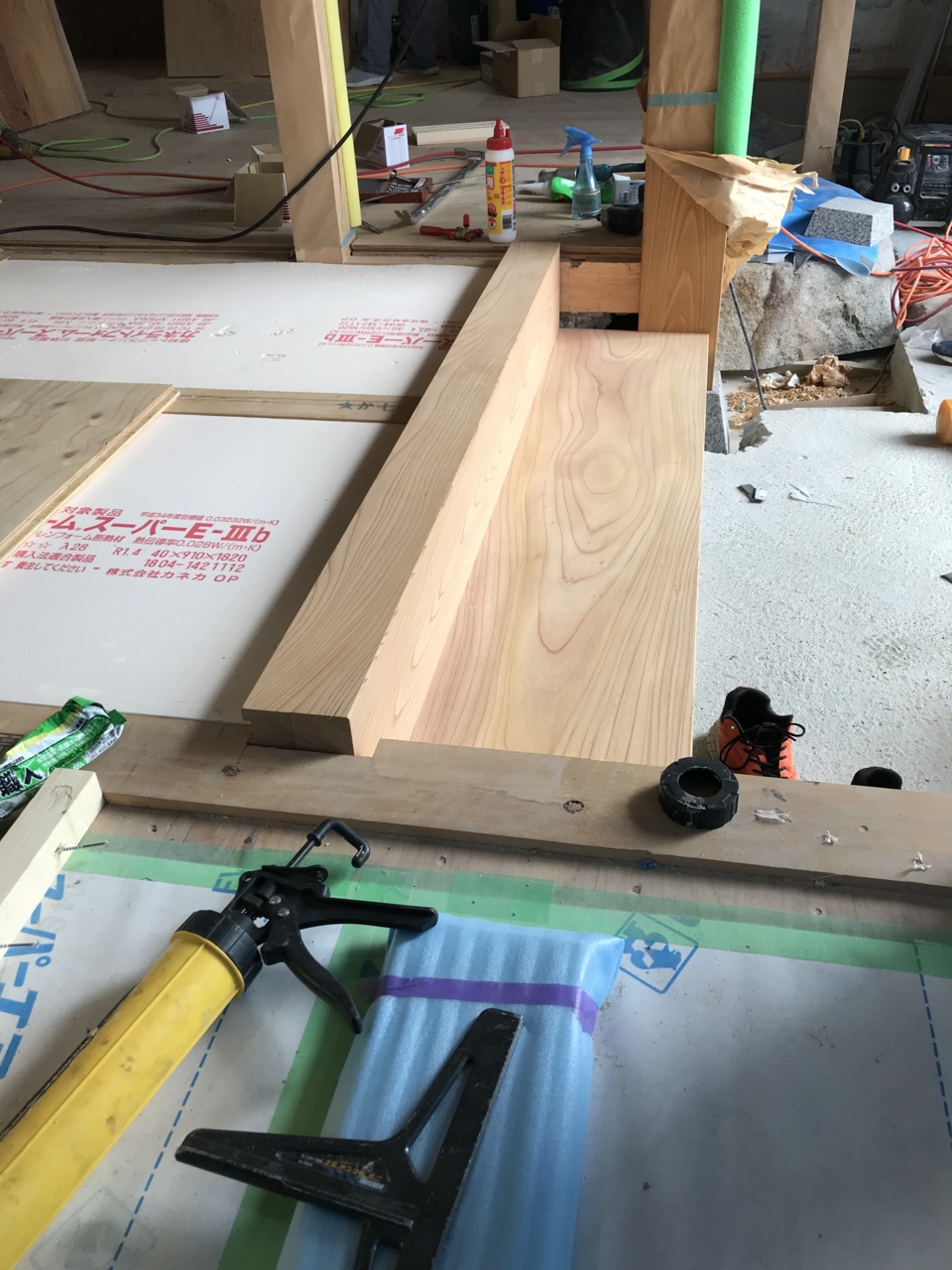 この作業は、ボードを張る前の前準備をしています。