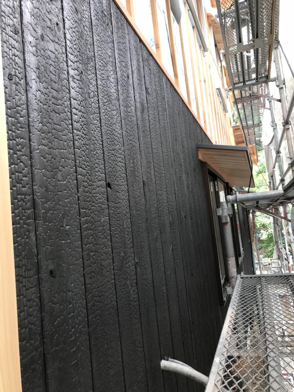 1階には、焼板が張られます。